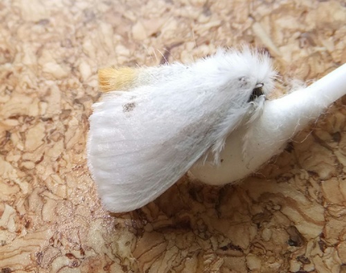 Wingspan 28-35 mm. The female is larger than the male and has a large tuft of yellow hairs at the tip of her abdomen, which is used to cover the newly-laid eggs.
