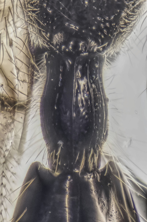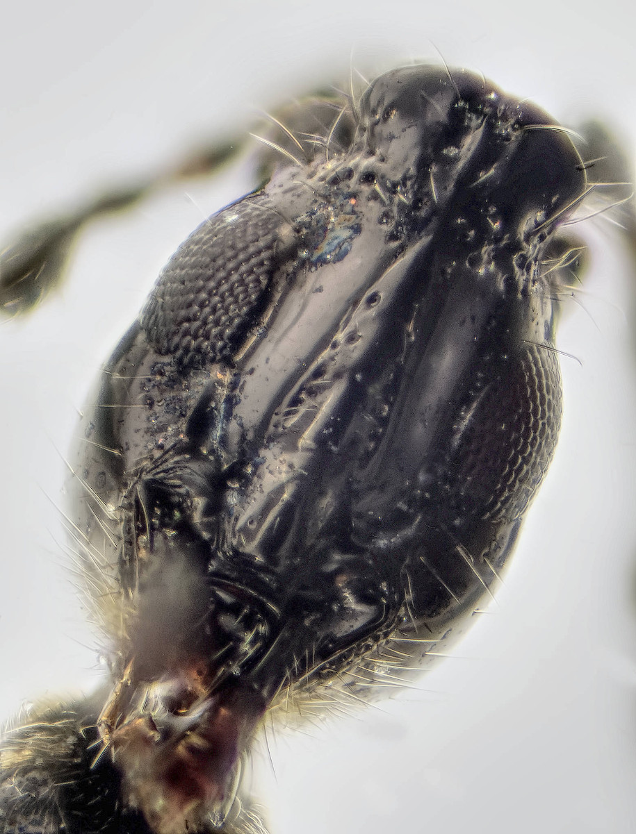 A genus of small (2-4mm) dark wasps. A very distinct group with particularly long mandibles that form a beak directed downwards and backwards and the lamelliform outgrowths of the frons. The species are far from easy to separate and probably need taxonomic revision.