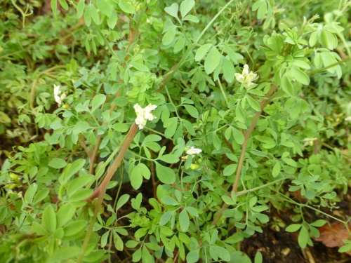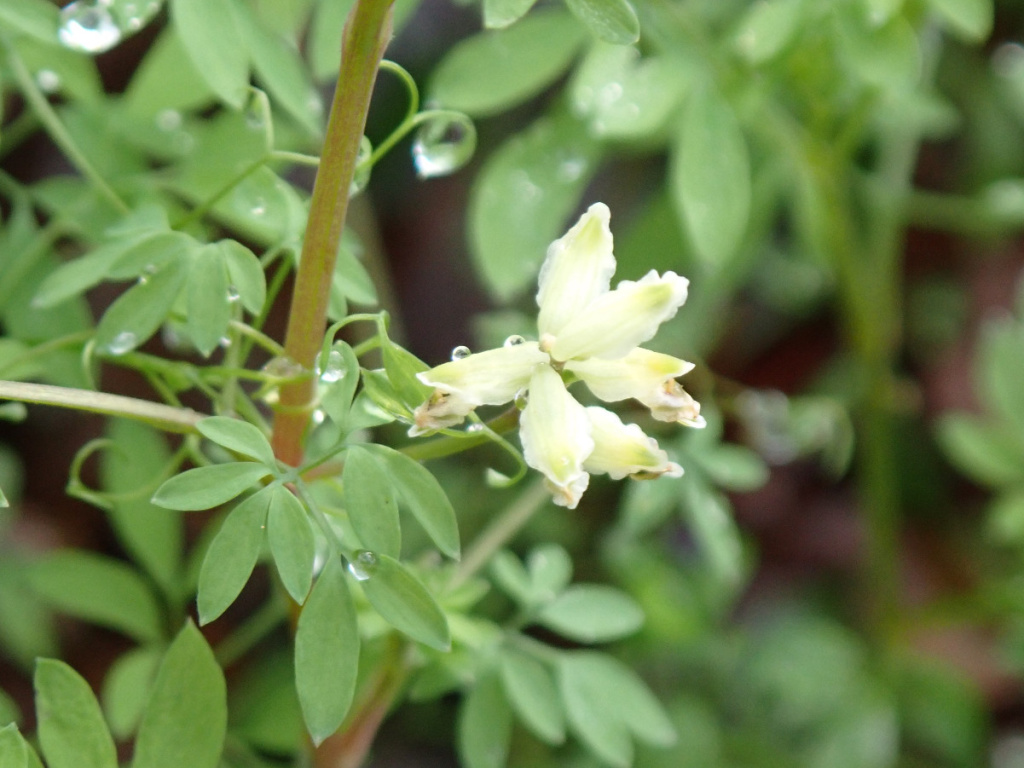 Climbing Corydalis is a delicate, pale, much branched climber, with pale cream flowers in a lax raceme of 6 to 8, and with leaves terminating in branched tendrils. It grows up to a metre tall with weak, often pinkish, clambering stems.