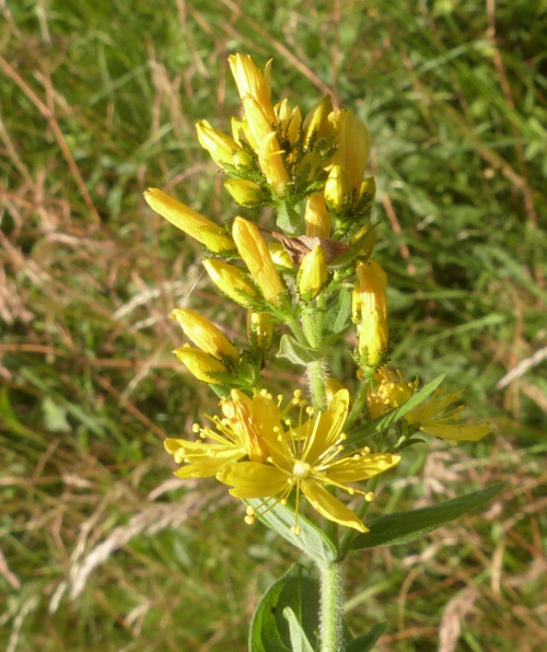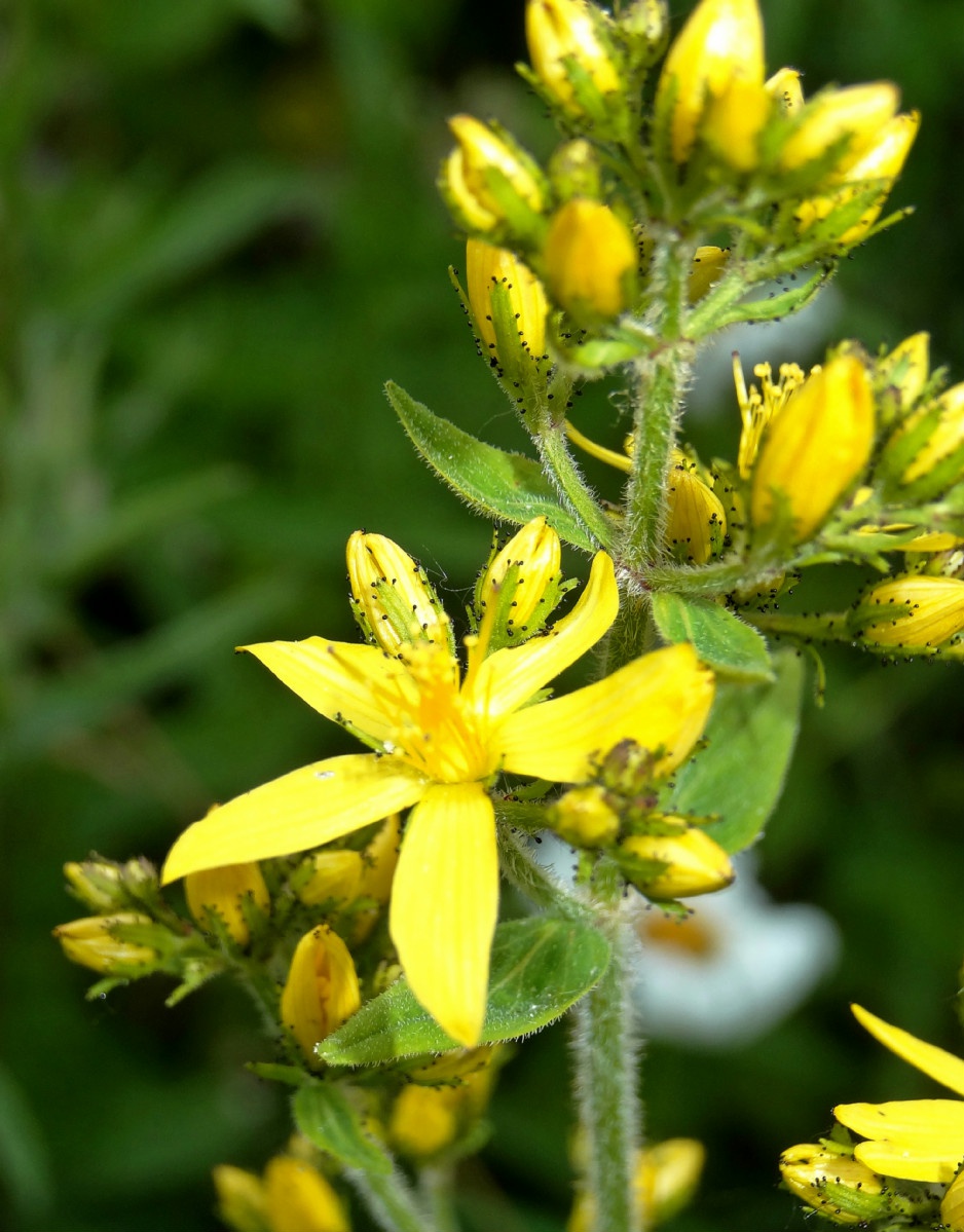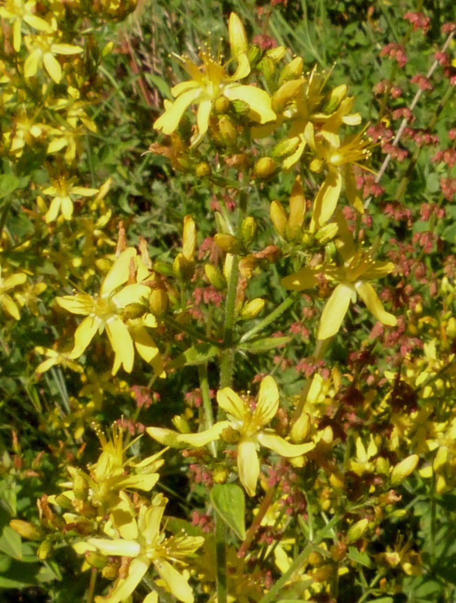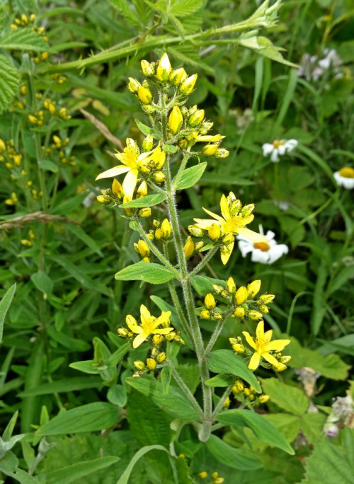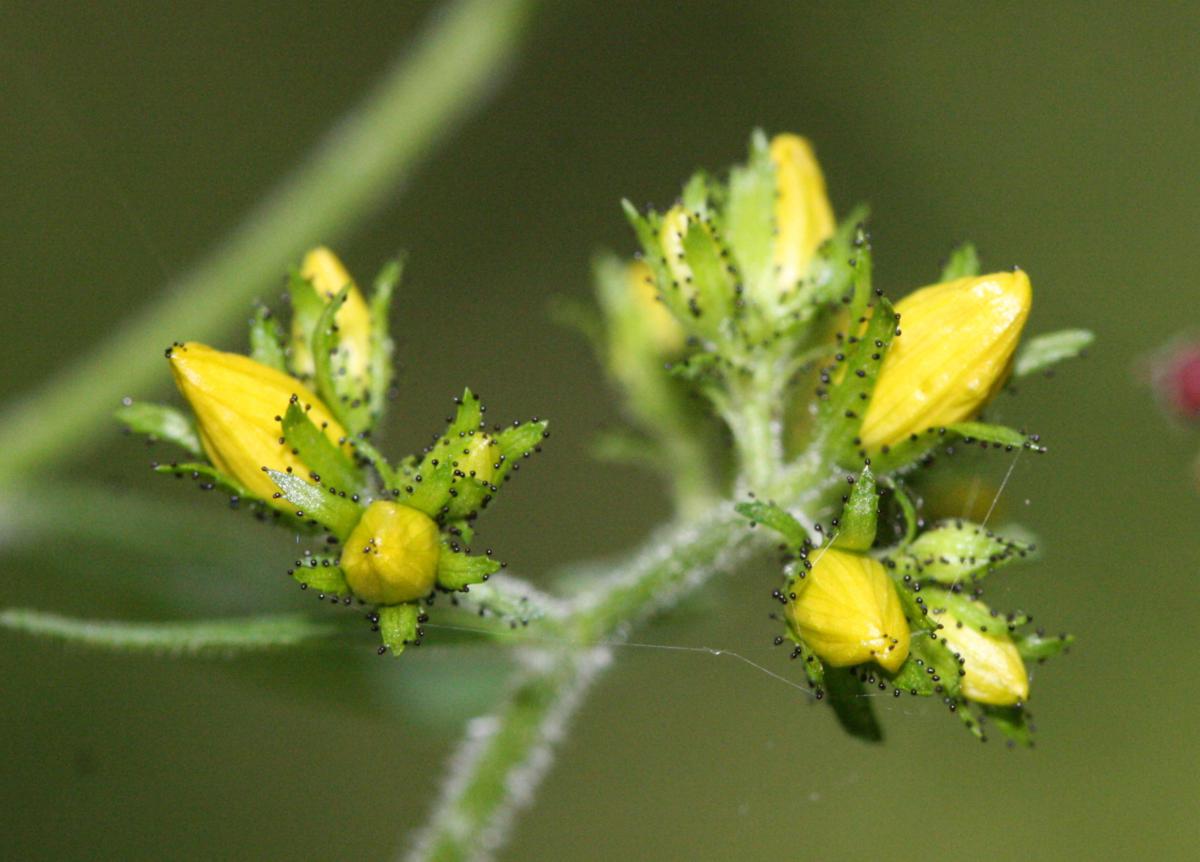 The St John's Wort (Hypericum) family are attractive, yellow-flowered perennials. They can look confusingly similar but can be distinguished by careful examination of key features. A hand-lens may be required (depending how good your eyesight is!). The leaf perforations are visible as translucent dots if the leaf is held up to the light.