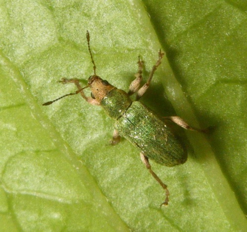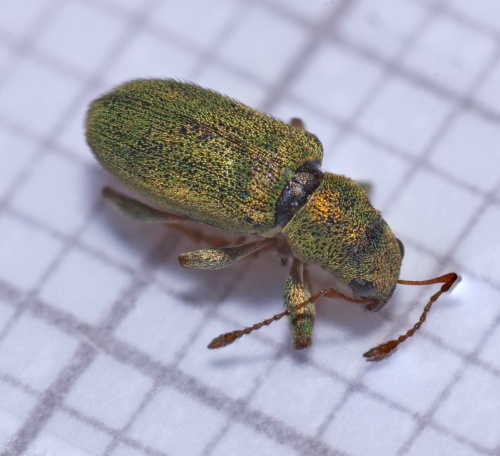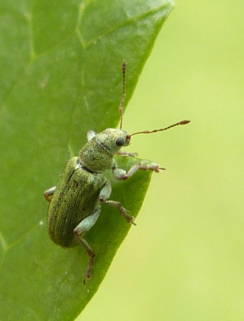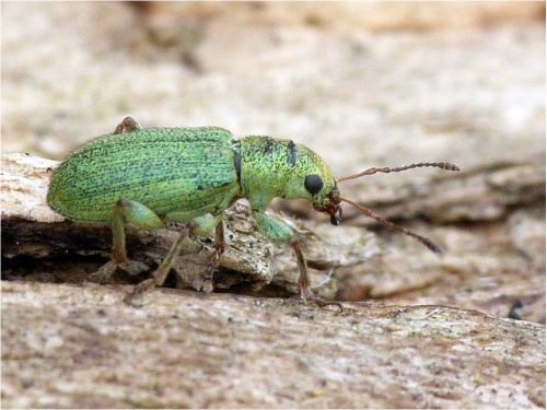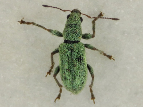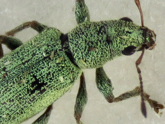 There are many other broad-nosed weevils that are of similar size with green scales (Phyllobius, Polydrusus), however the domed head and bare ridge on the rostrum between the eyes and diagnostic of Pachyrhinus.