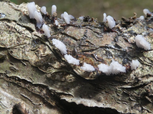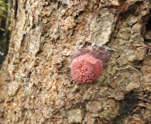 This slime mould is pinkish in its youth and rusty-brown as it matures to its spore-producing stage.