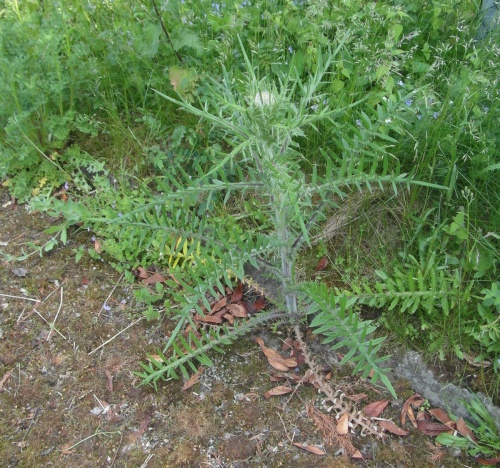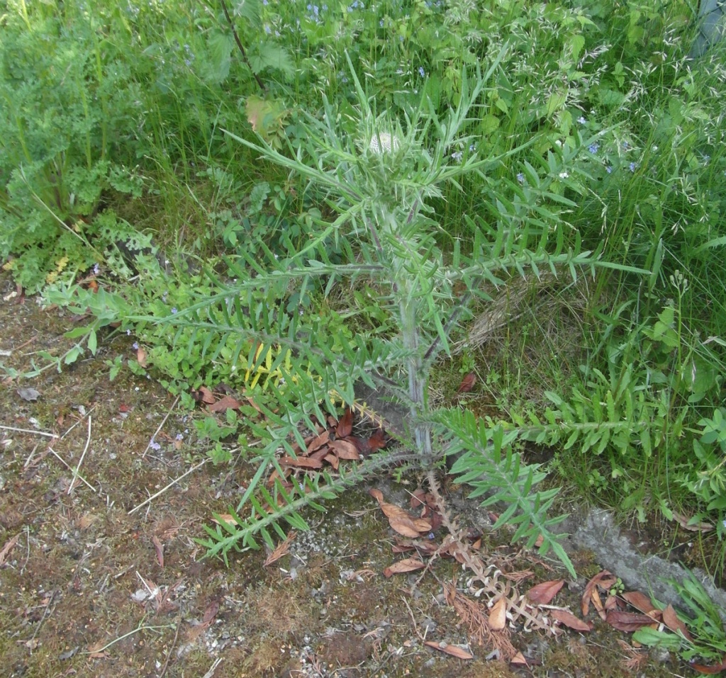 A very large plant. As with all Cirsium, the pappus-hairs (the silky white hairs attached to the seed - the thistledown) are individually feathery or branched.